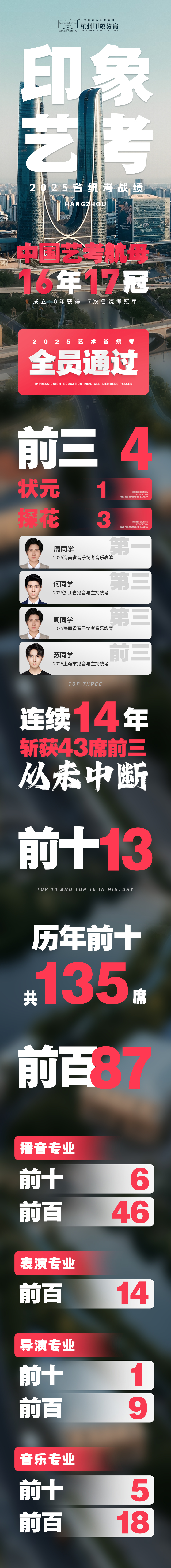 曾经,印象是浙江艺考届的老大哥,今日,我们仍是全国艺考圈的领头羊。我们的足迹远不止浙江,更是遍布全国。