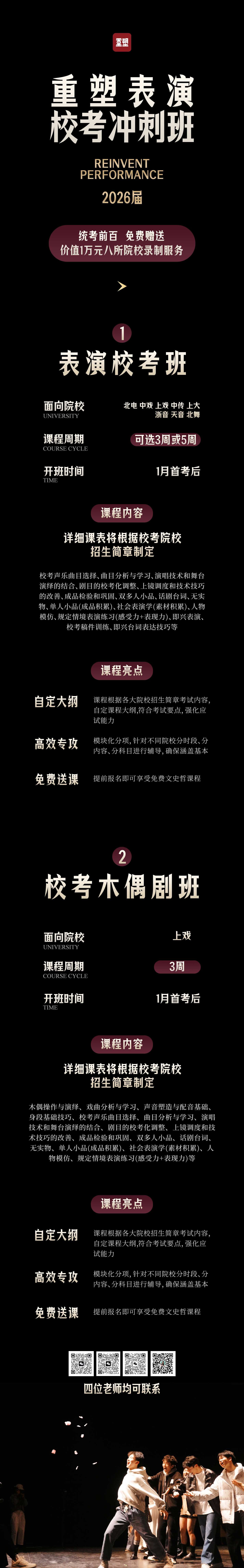 我们汇聚多年带出北电、中戏合格证的导师资源,深度聚焦各校最新考试风向,为你准备好从“选段”到“应答”的全套决胜方案。