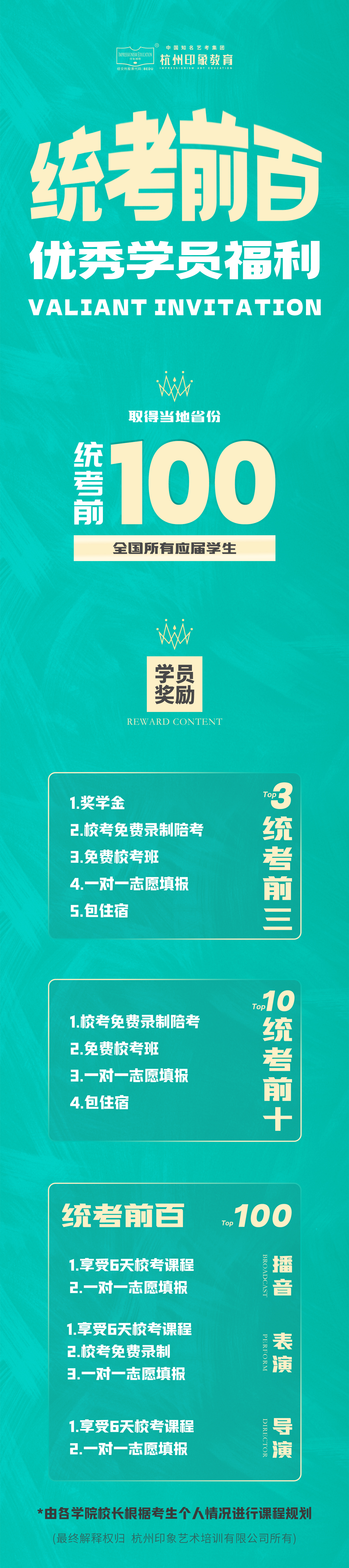2026届浙江省统考成绩已经揭晓,全省艺考生同场角逐,能跻身前百,意味着你已用实力站在了金字塔尖。这份荣耀,值得响亮的喝彩,更值得一份能助你走得更远的实质性回馈。