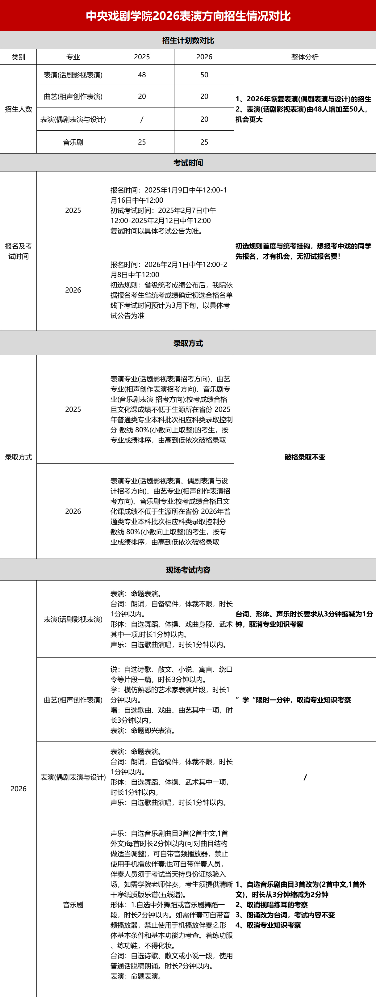 中央戏剧学院2026年招生简章出炉后,印象各专业教研组第一时间对中戏新简章做了全面分析,从形式、内容等方向详细解读了这次中戏校考,也给出了建议。