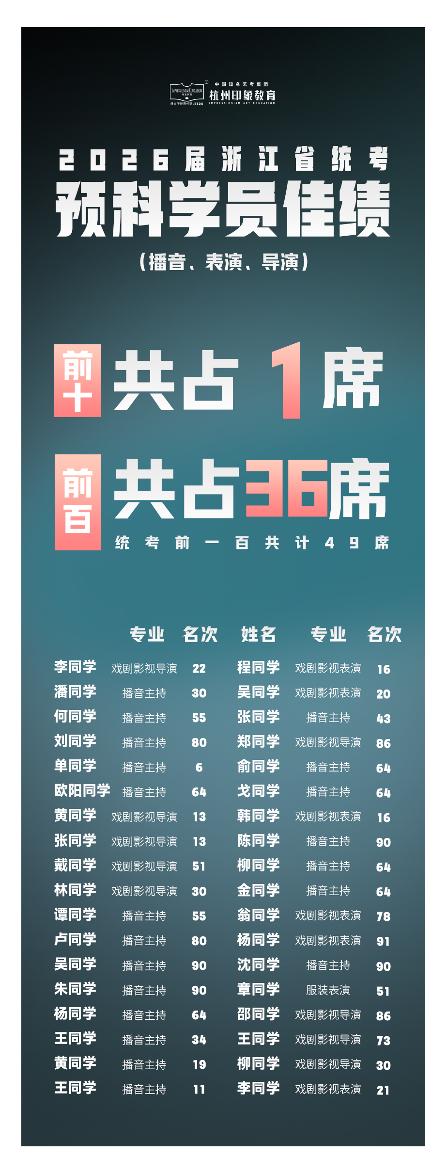 在印象,总有这样一个班级从未让人失望:自开班起,拿下过10个状元,8个榜眼,8个探花,更有数不清的省统考前百(仅26届就有36名省统考前百)。